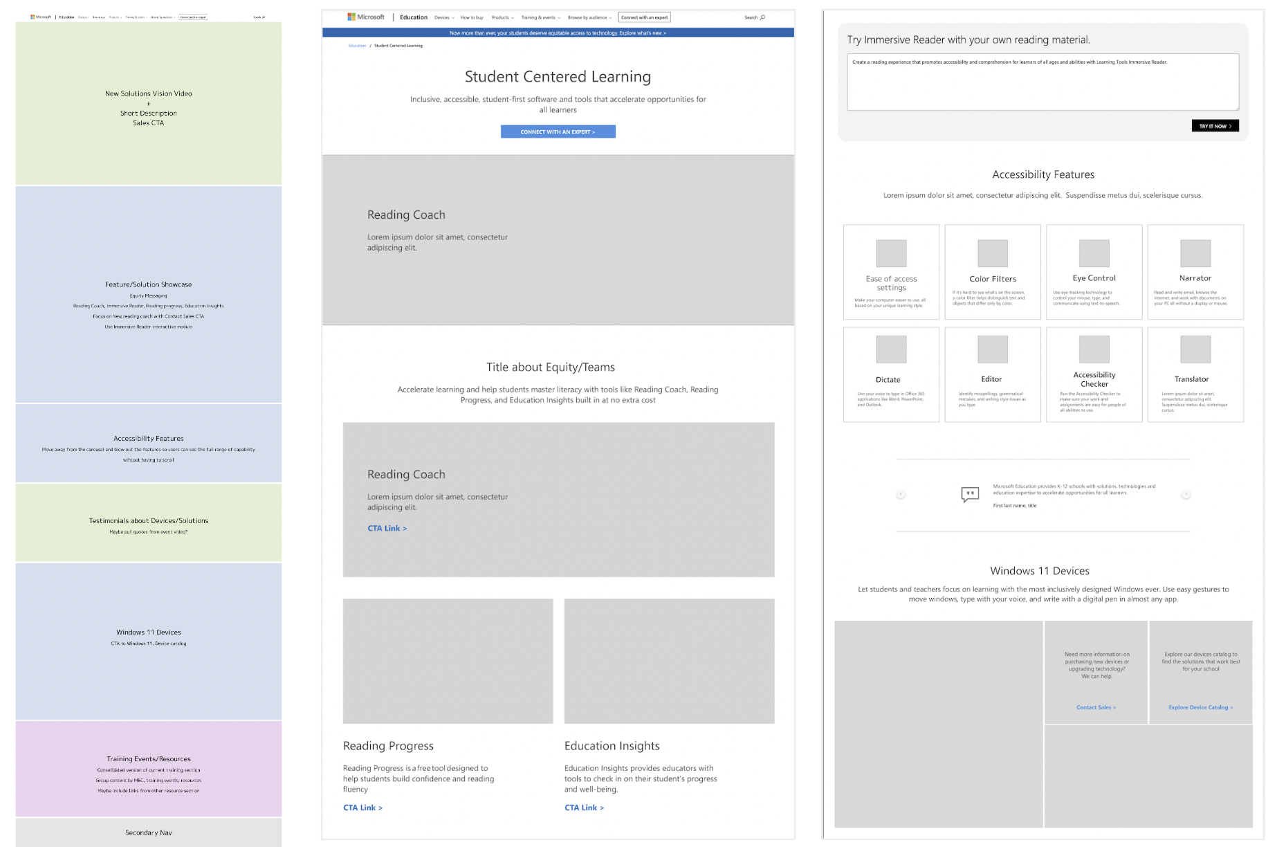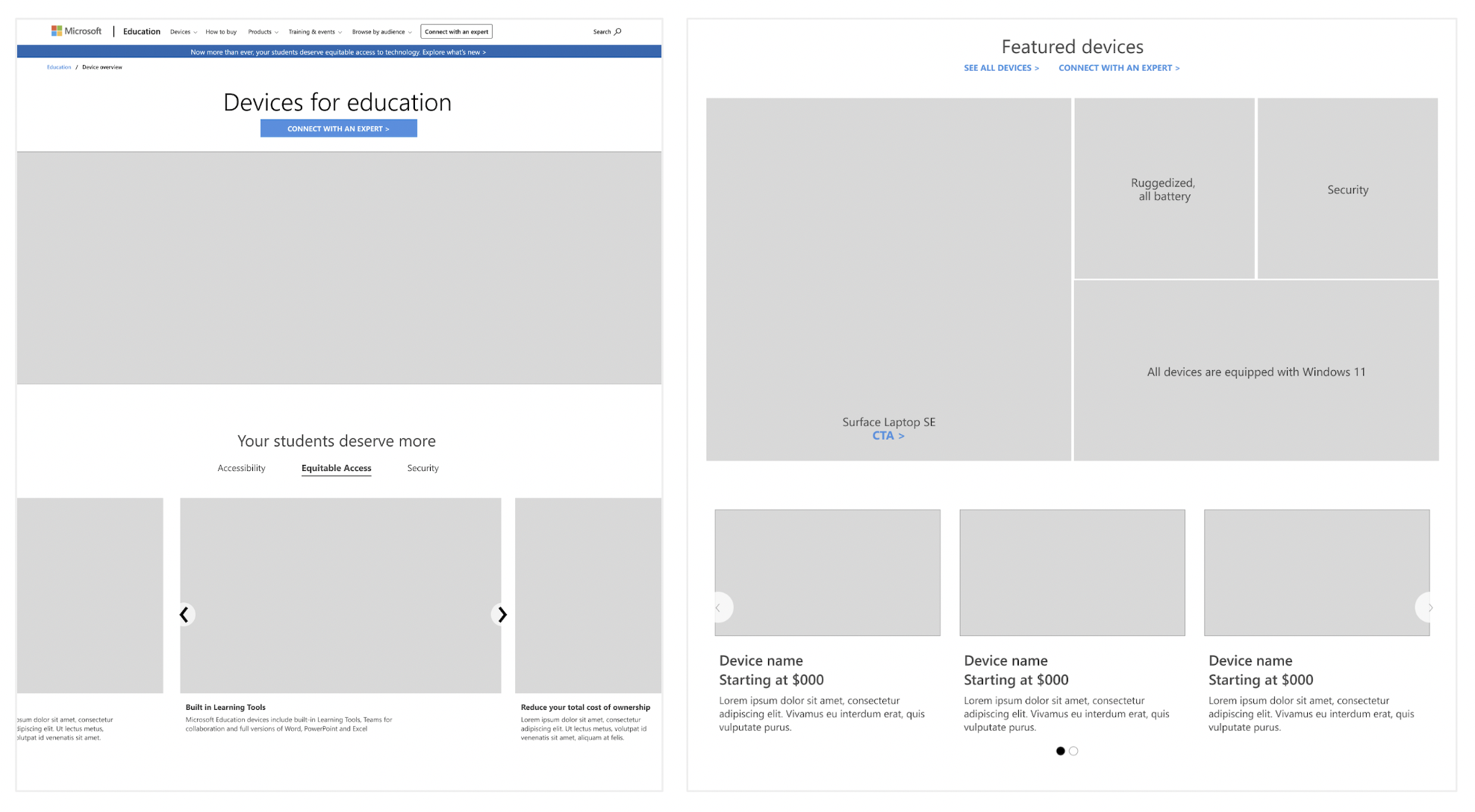 I worked on updates to Microsoft’s Education site based on a large ad campaign focused on teachers, students, and parents before the school season. I made updates to various pages to emphasize new products and information surrounding the ad campaign.